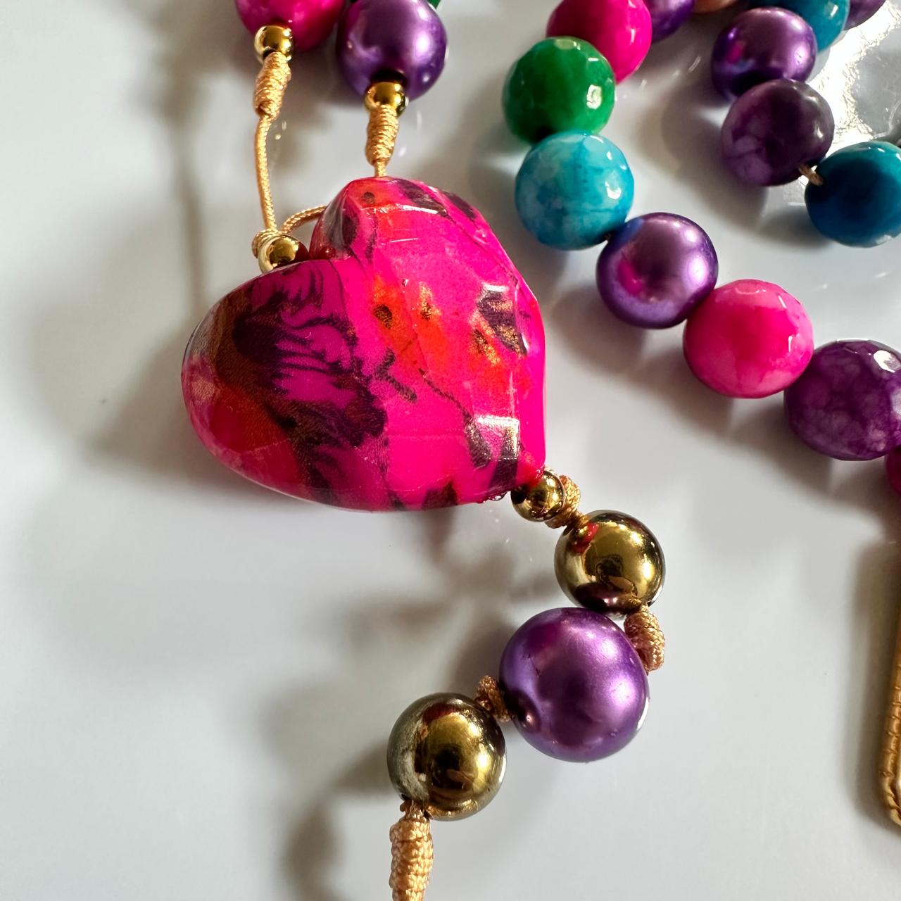 Camándula tradicional en colores con medalla de la Virgen de Guadalupe.