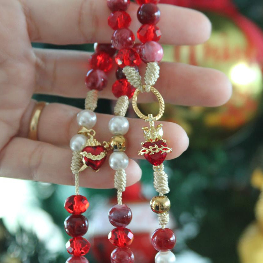 Rosario tradicional con medalla del Sagrado Corazón de Jesús Corazones de Jesús y María, bellos detalles que nos recuerdan su amor.