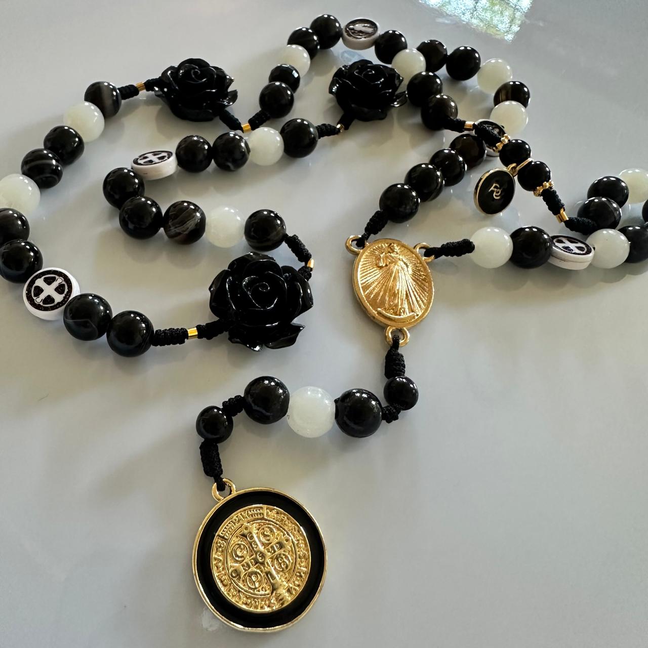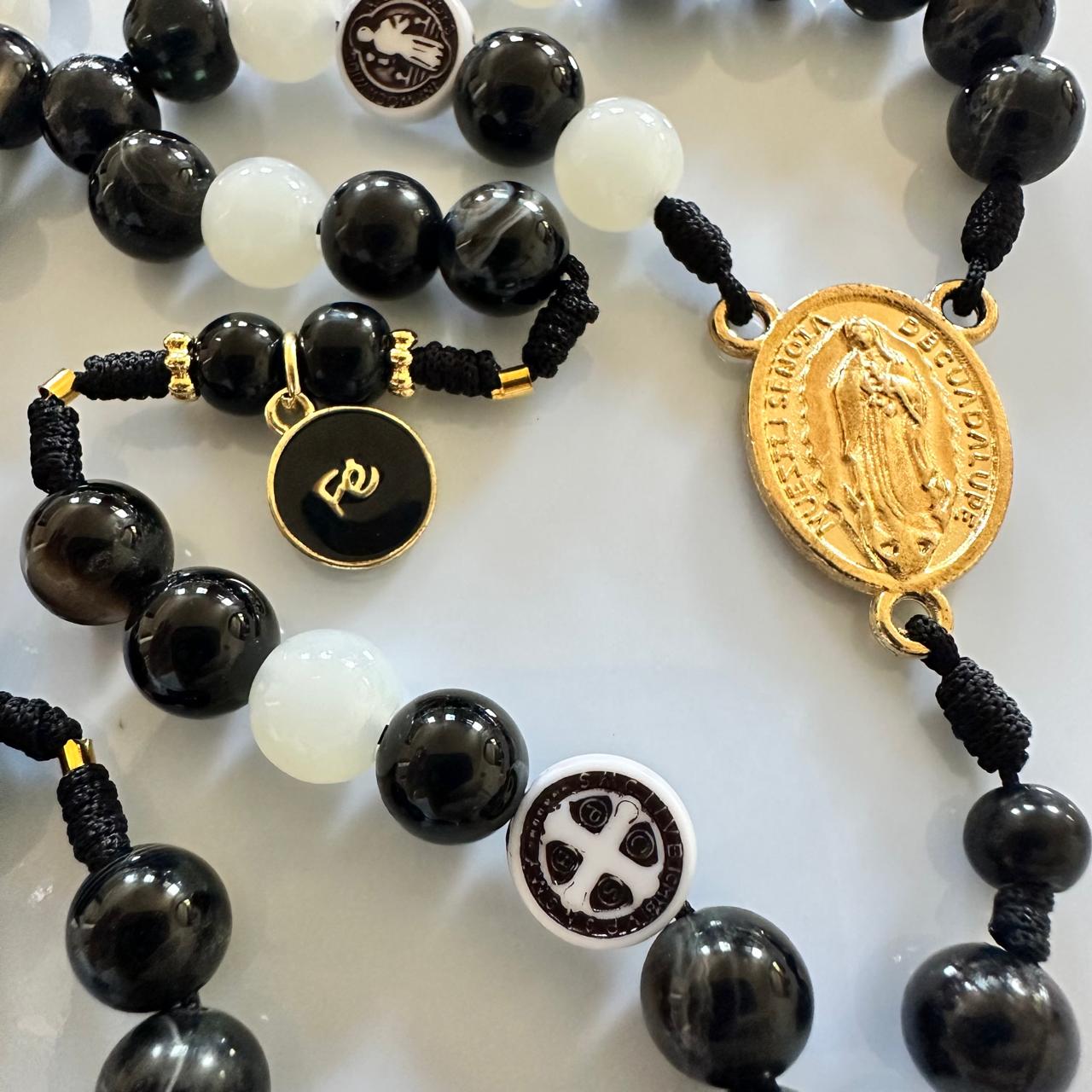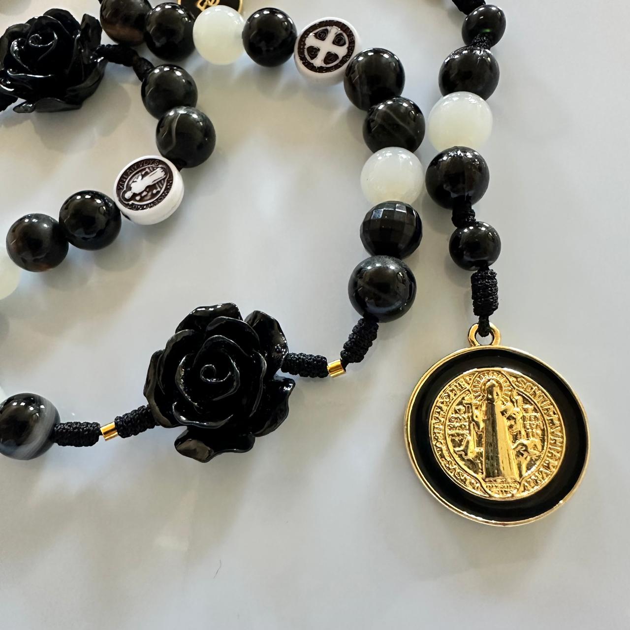 Camandula tradicional con medalla de San Benito y la Divina Misericordia.