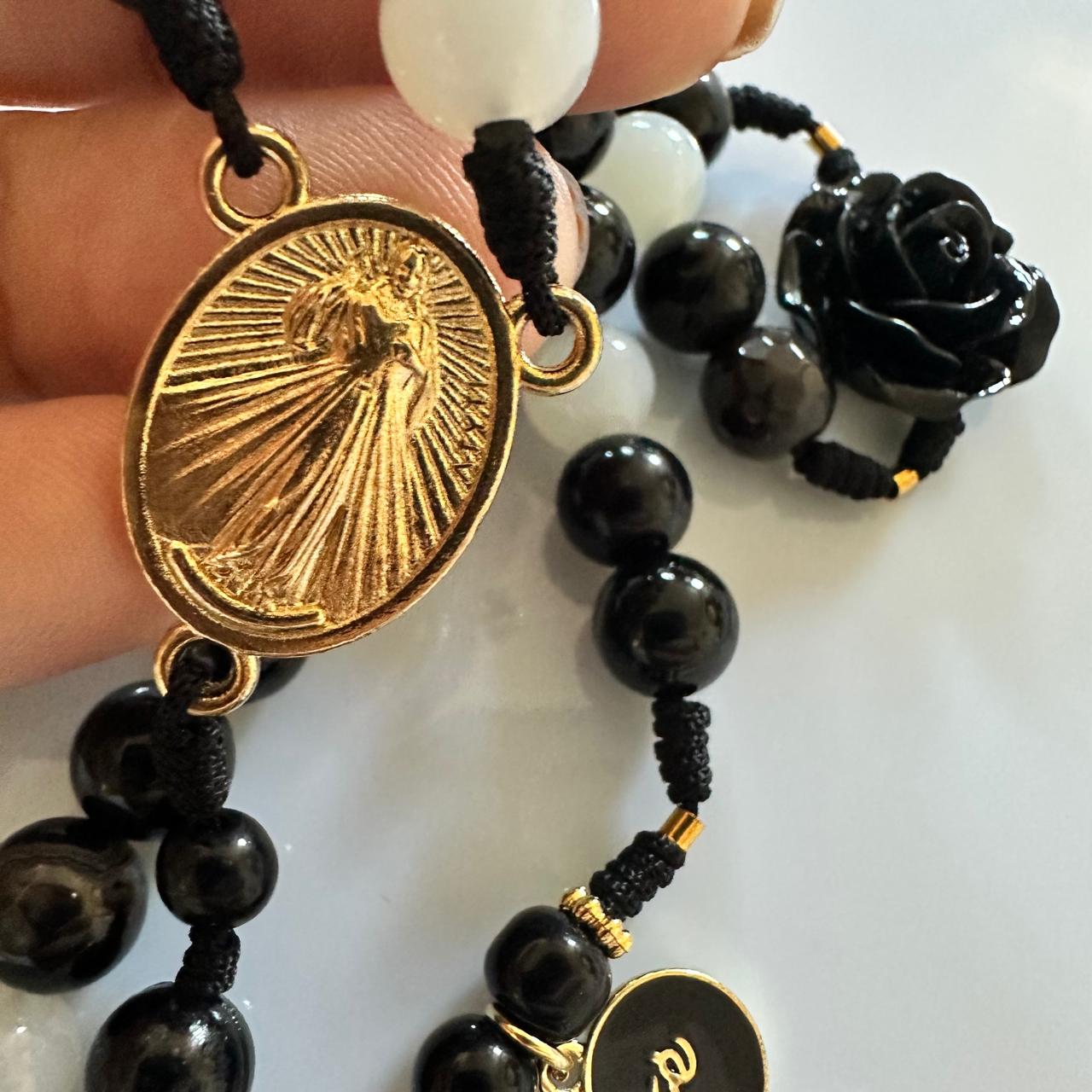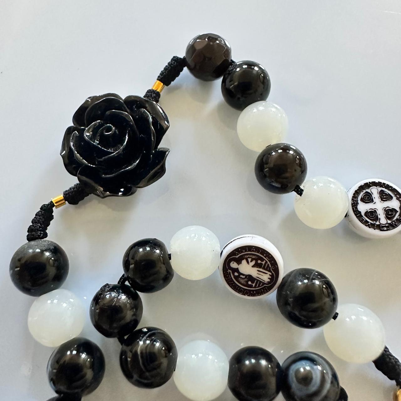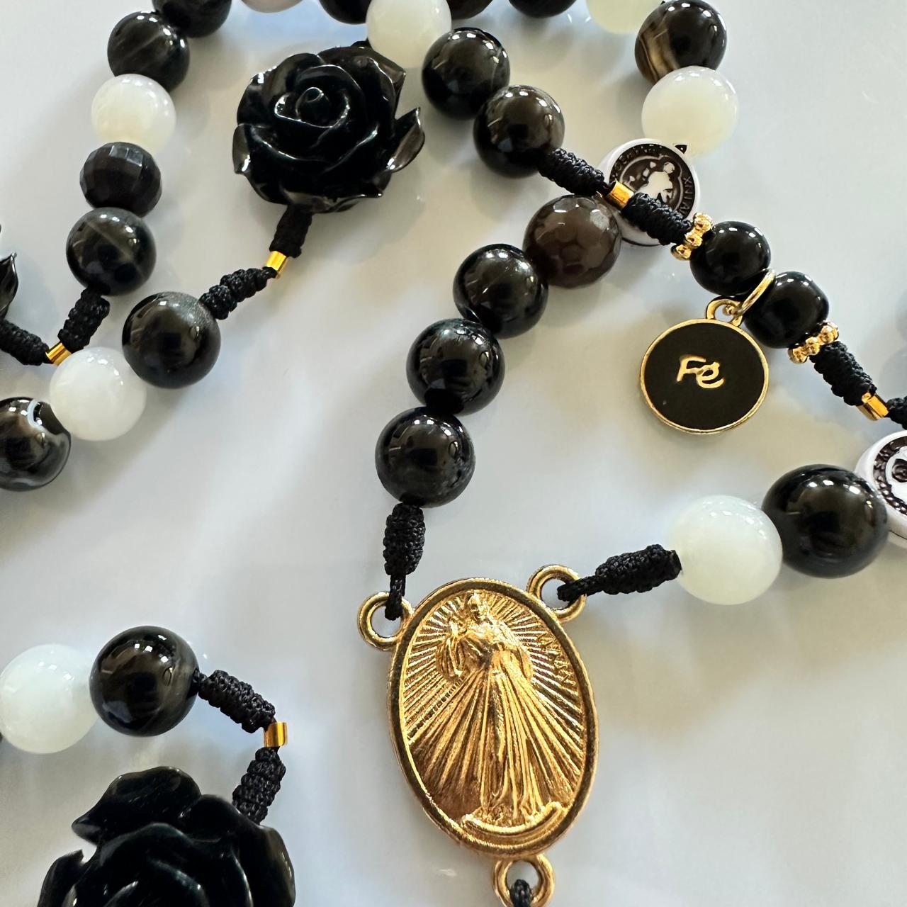Camandula tradicional con medalla de San Benito y la Divina Misericordia.