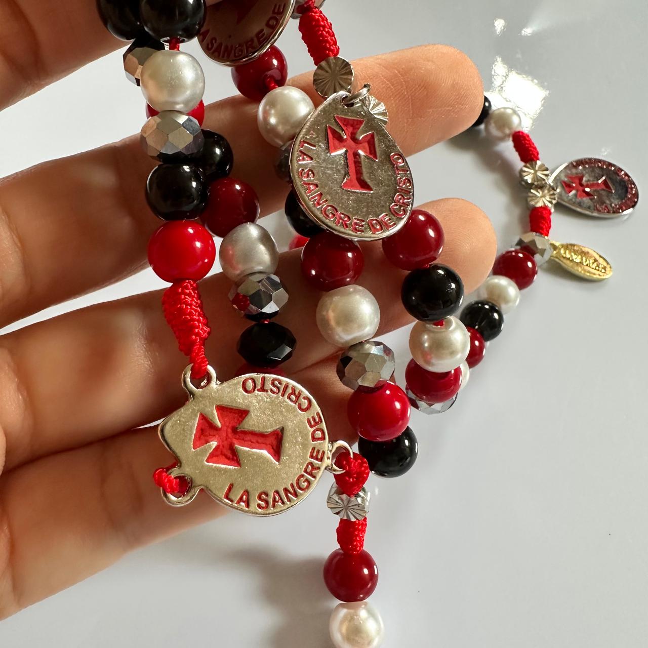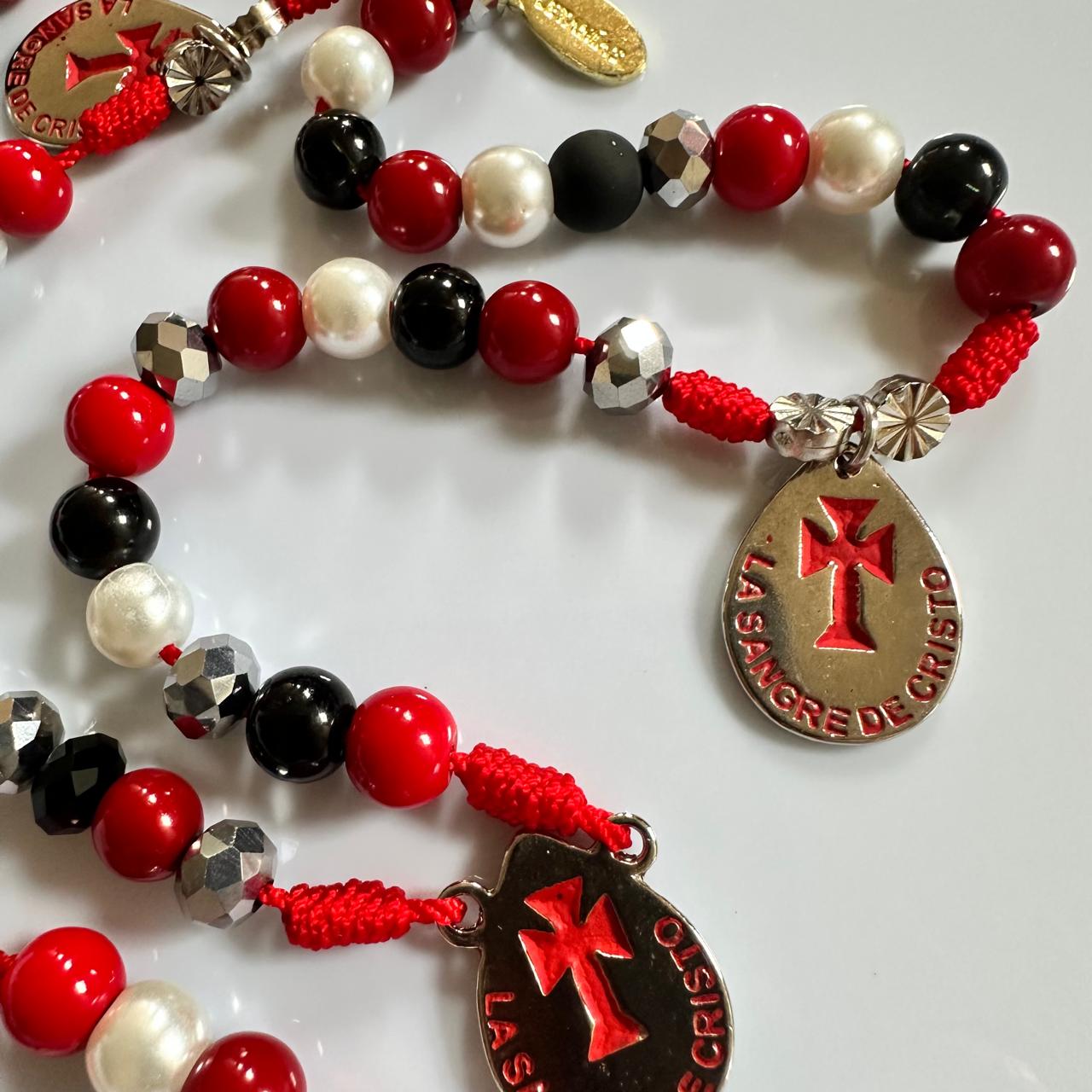 Camándula especial de 5 misterios por 12 jaculatorias, para orar la coronilla de la Sangre de Cristo.