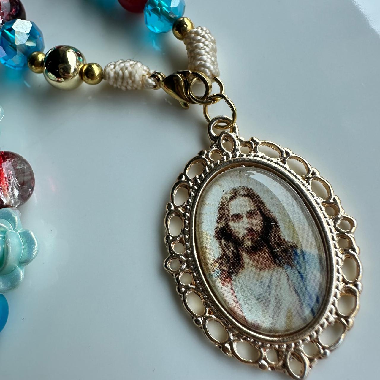 Rosario tradicional; la rosa en cada misterio simboliza la ofrenda de amor y oración presentada a Jesús.