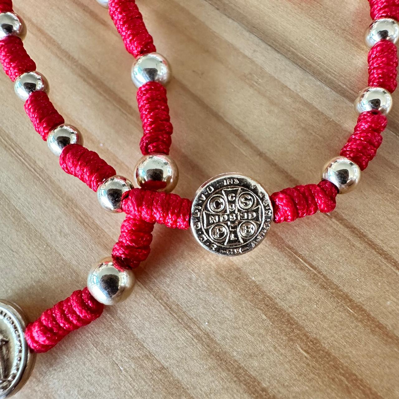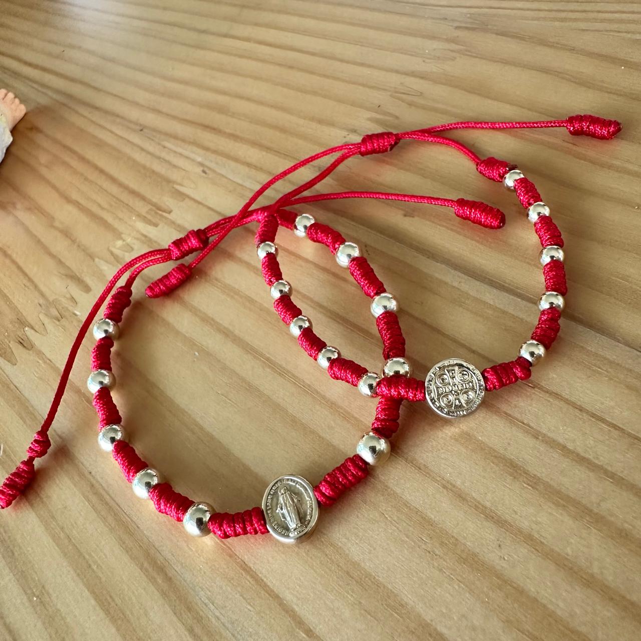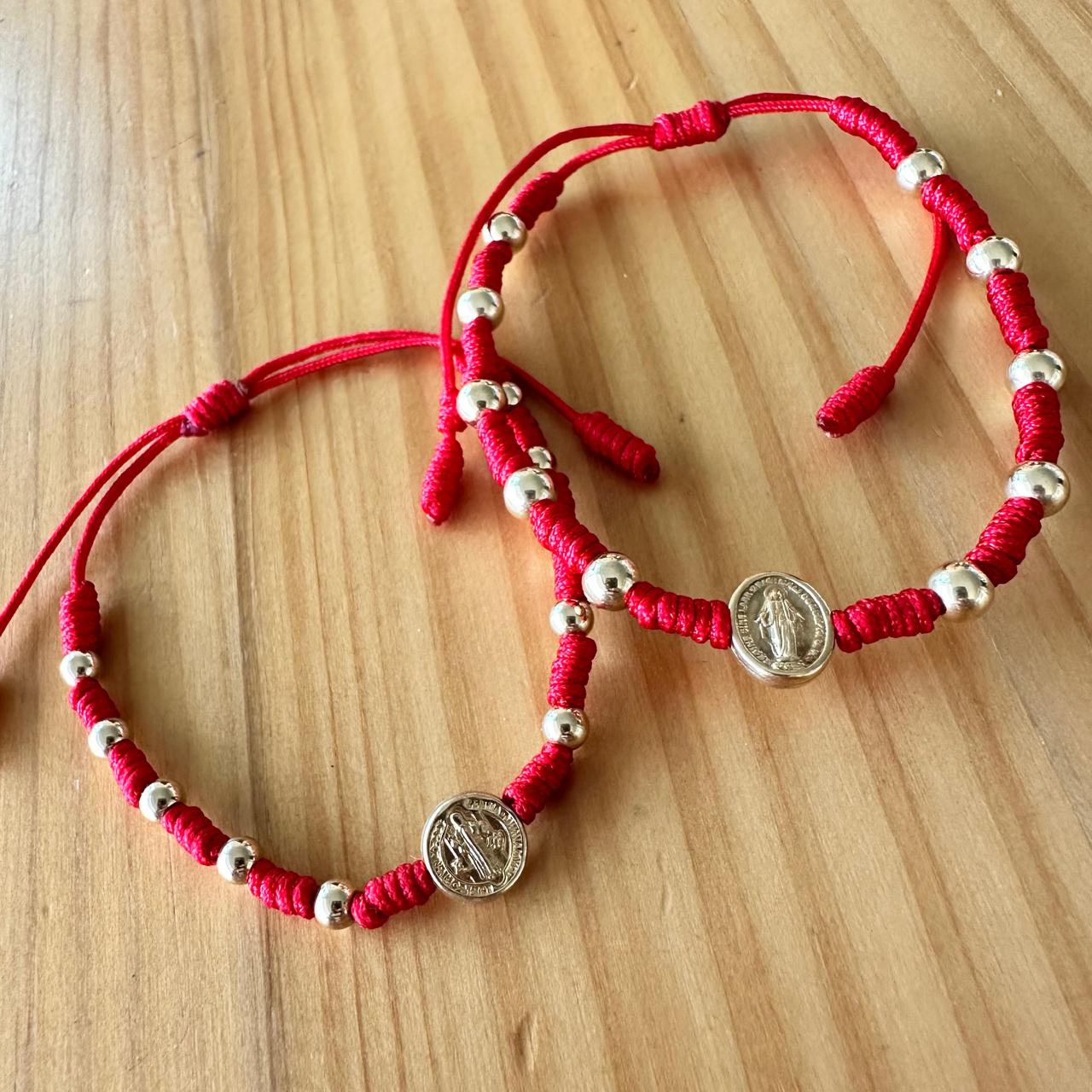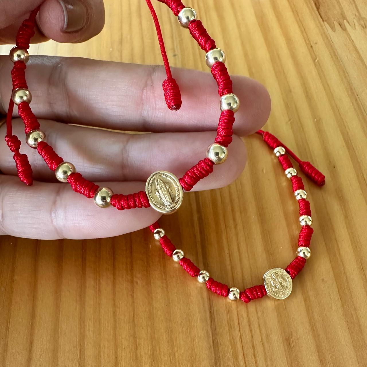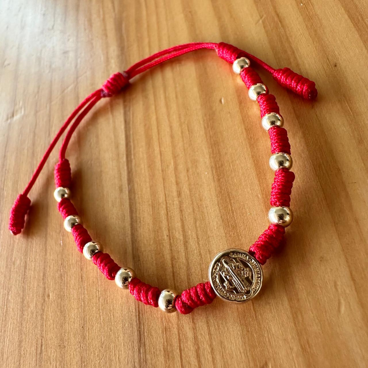 Pulsera denario de uso diario en oro laminado, disponible con medalla de San Benito o de la Virgen Milagrosa.