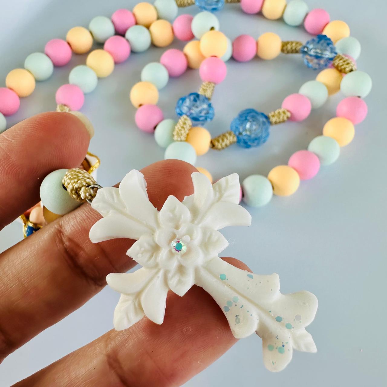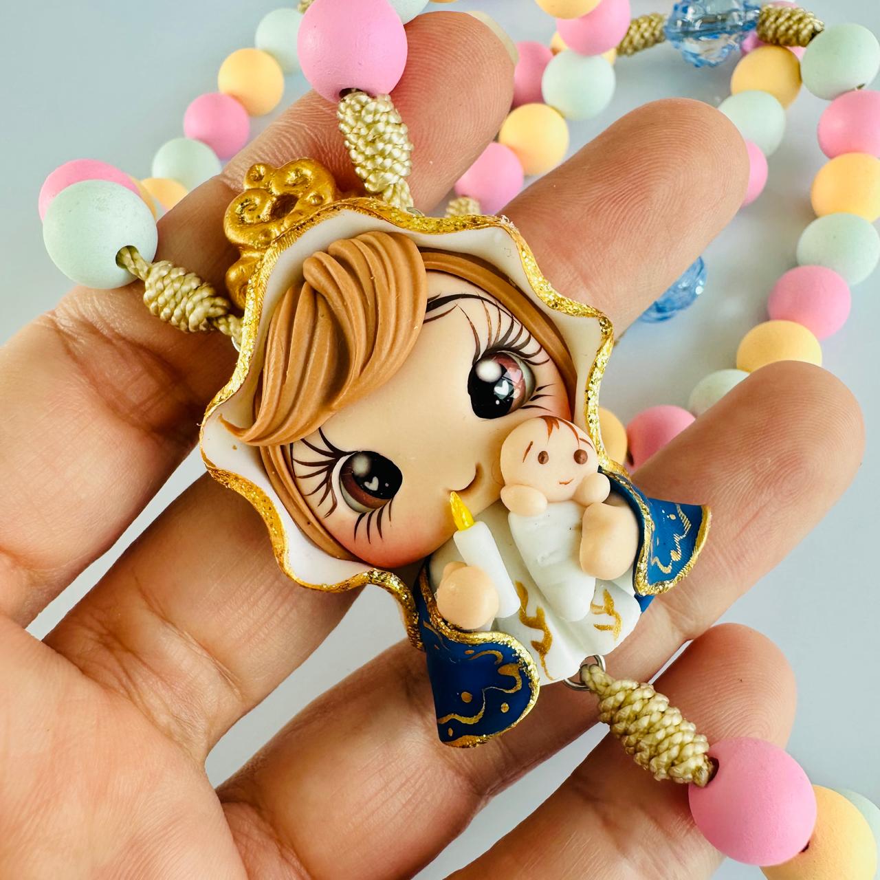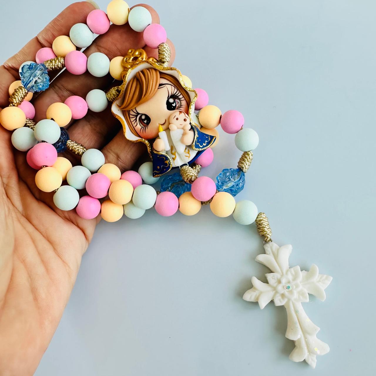 Rosario infantil con la Advocación de la Virgen de la Candelaria. Ideal para iniciar a los pequeñas de la casa a acercarse al rezo del Rosario.