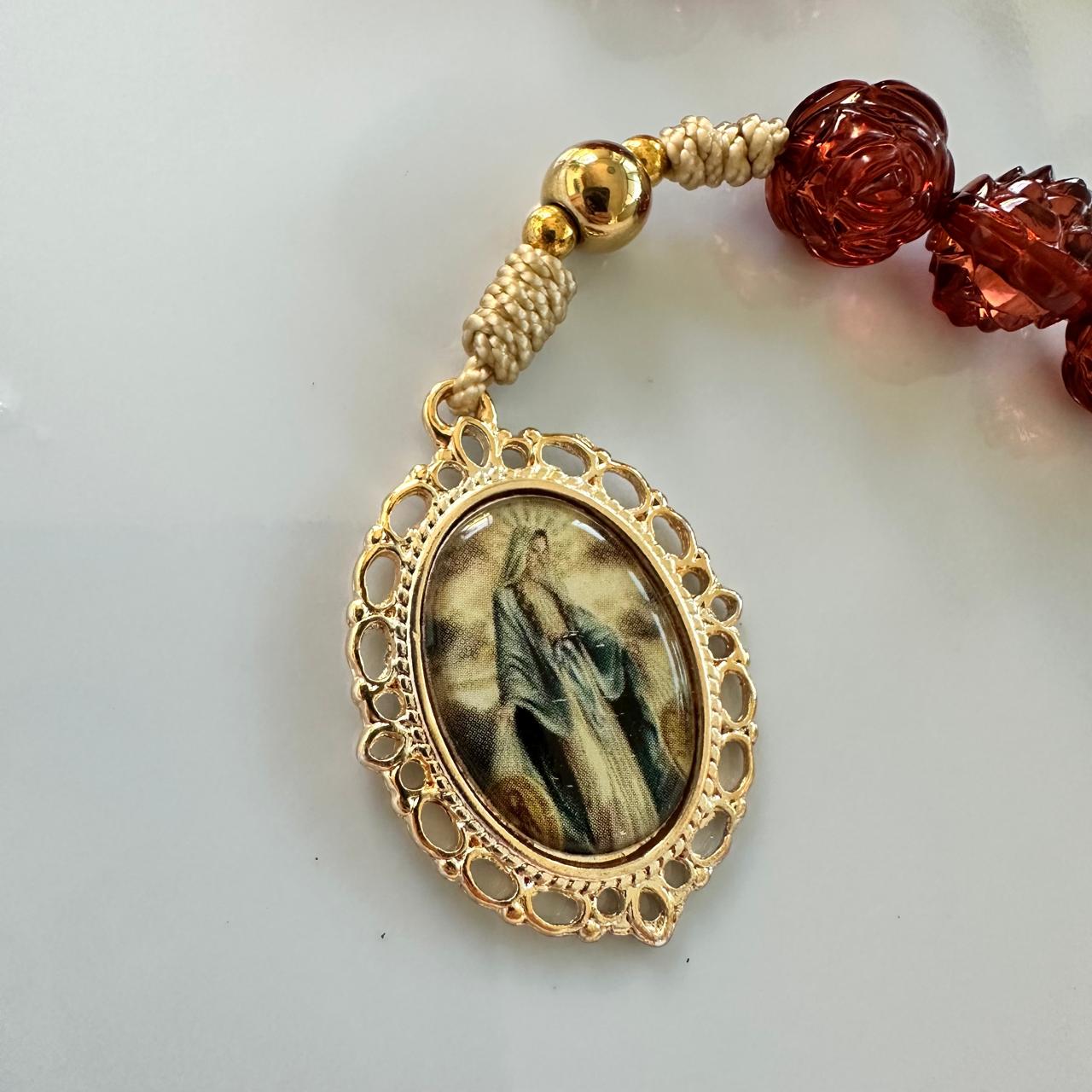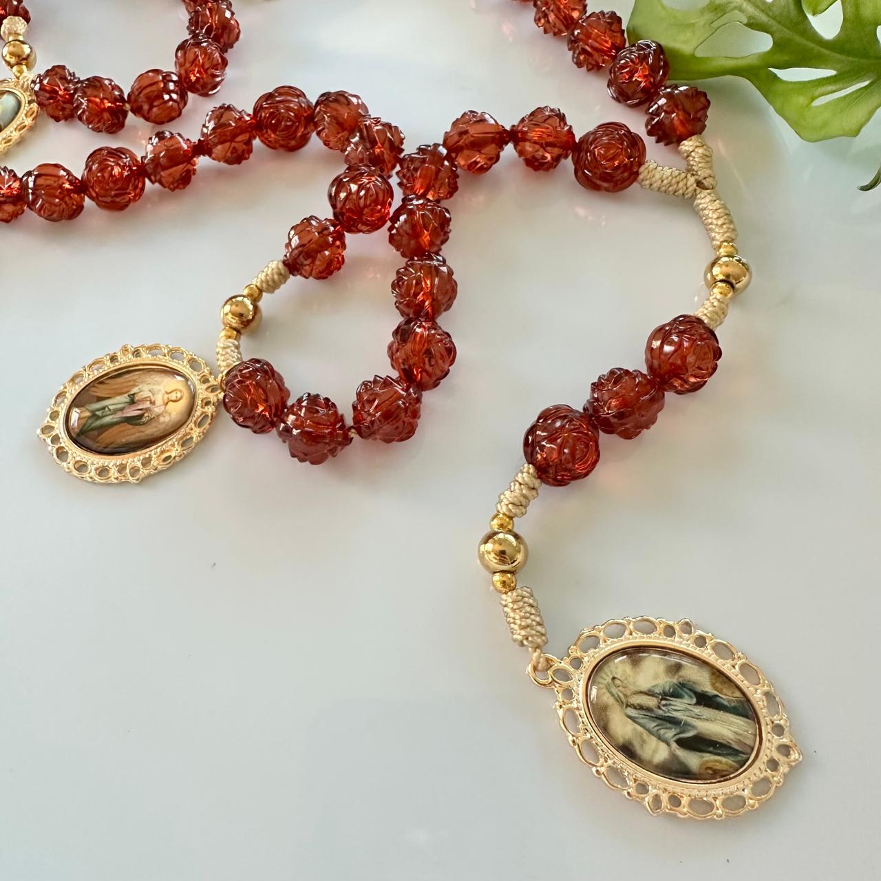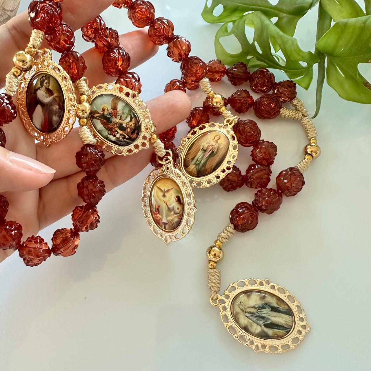 Rosario tradicional con medallas de San Miguel, San Gabriel, San Rafael, Virgen Milagrosa y Santísima Trinidad.