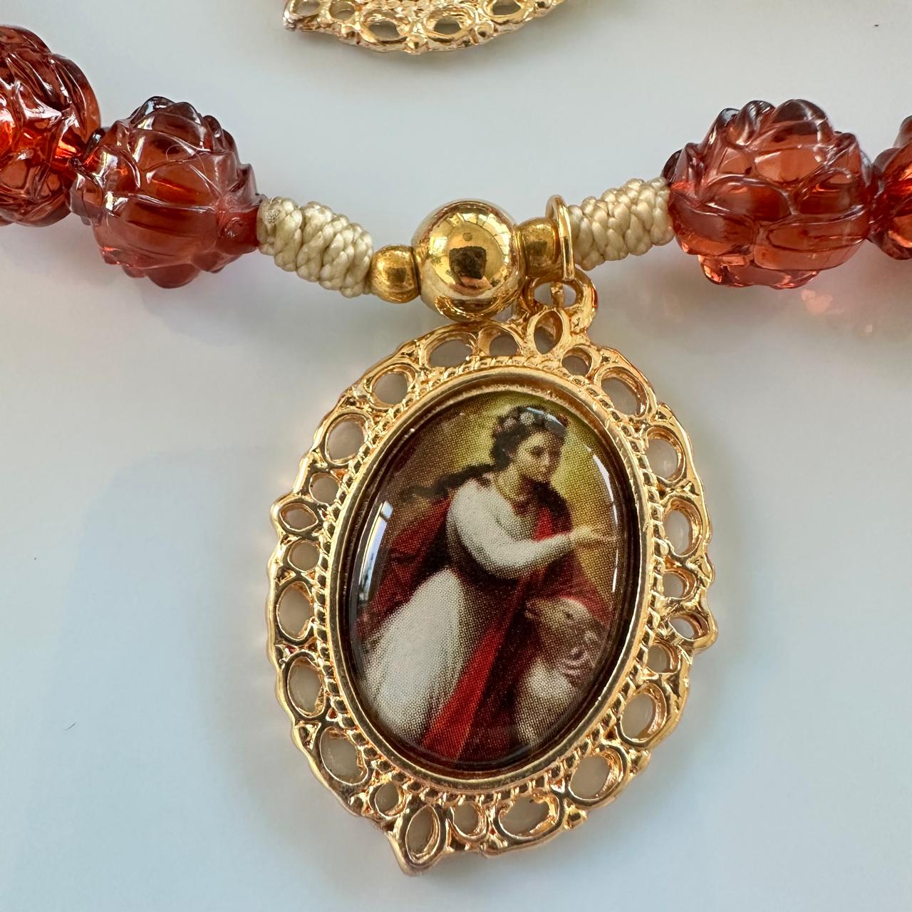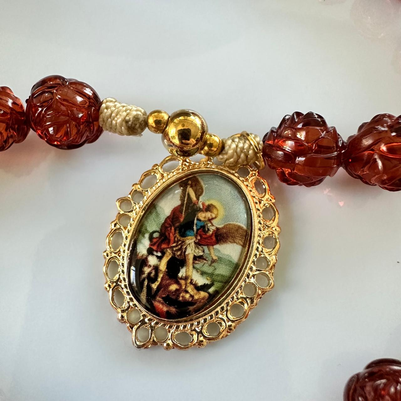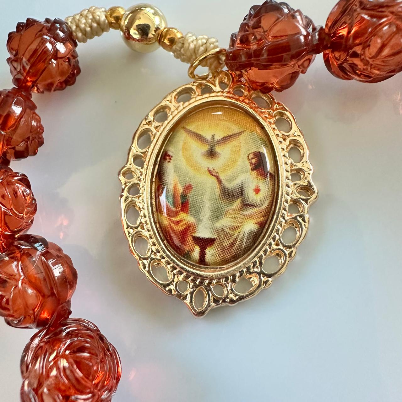 Rosario tradicional con medallas de San Miguel, San Gabriel, San Rafael, Virgen Milagrosa y Santísima Trinidad.