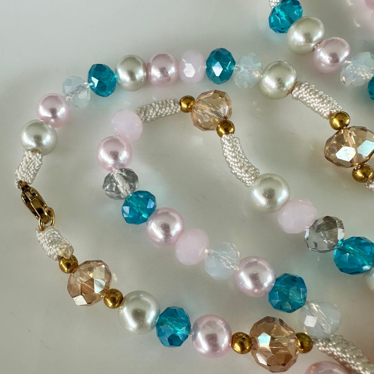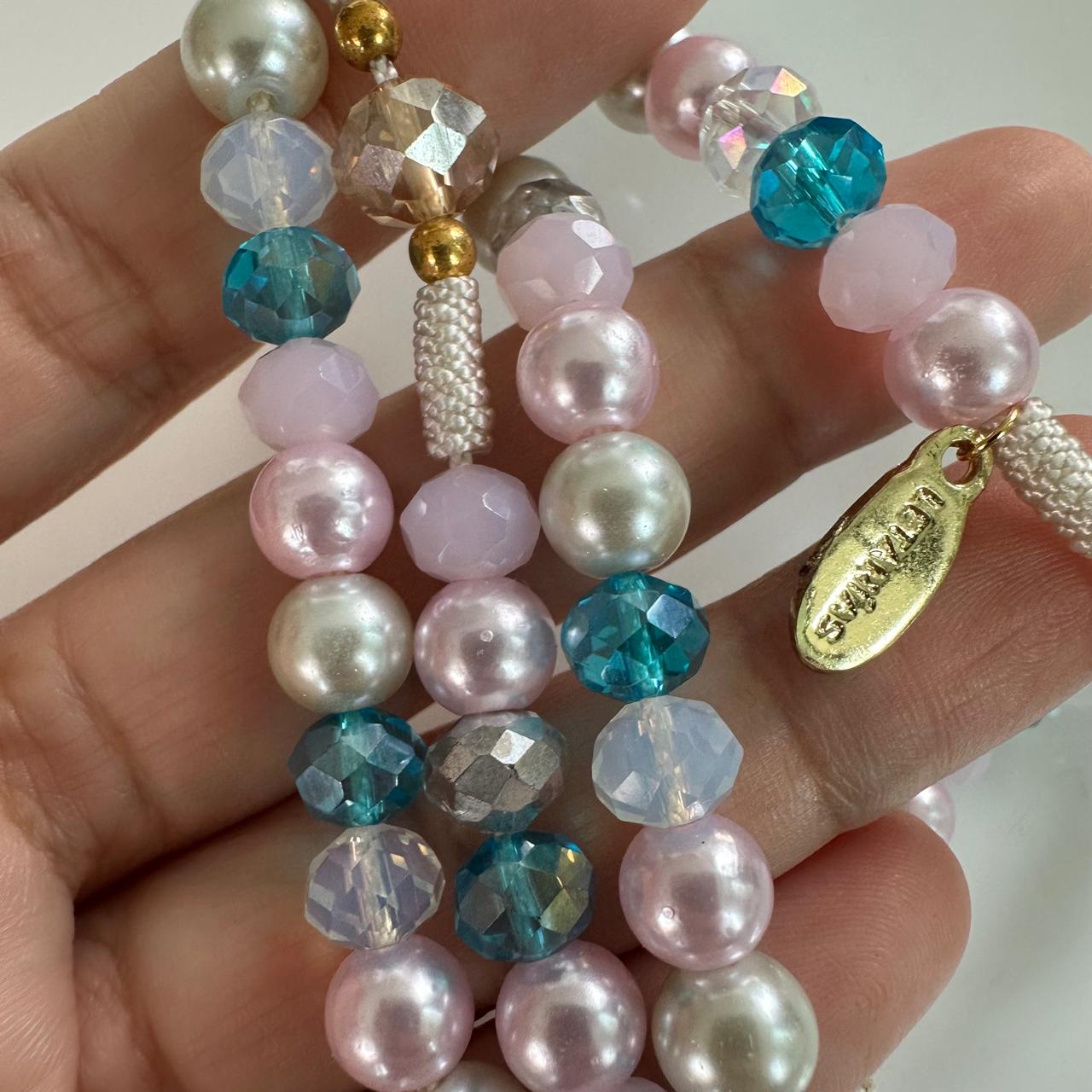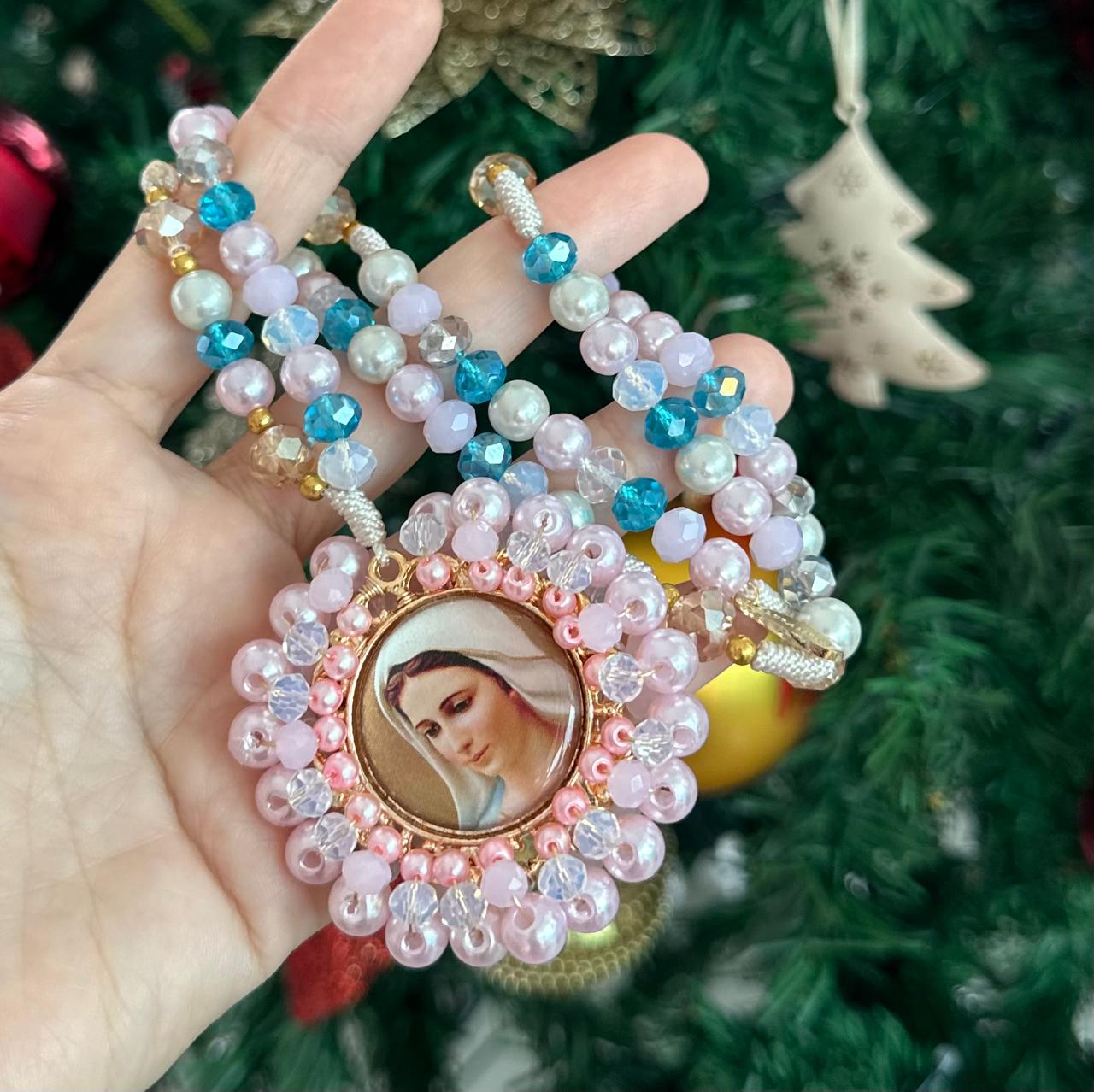 Rosario tradicional con medalla recamada de la Reina de la paz.