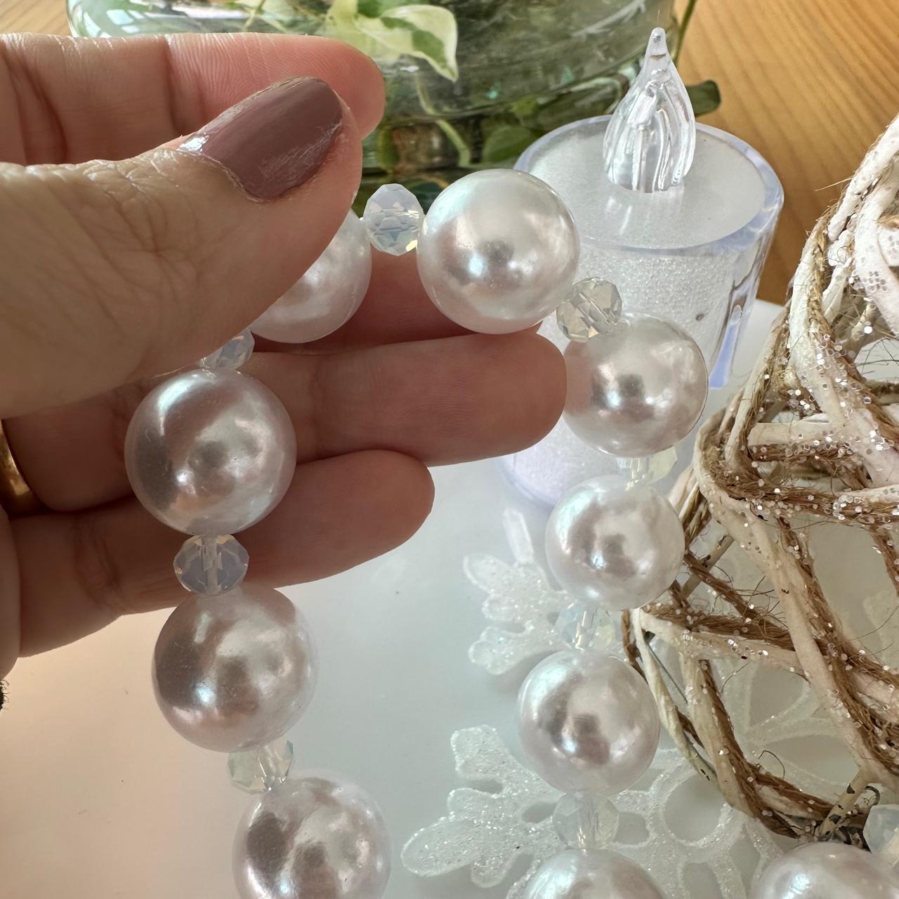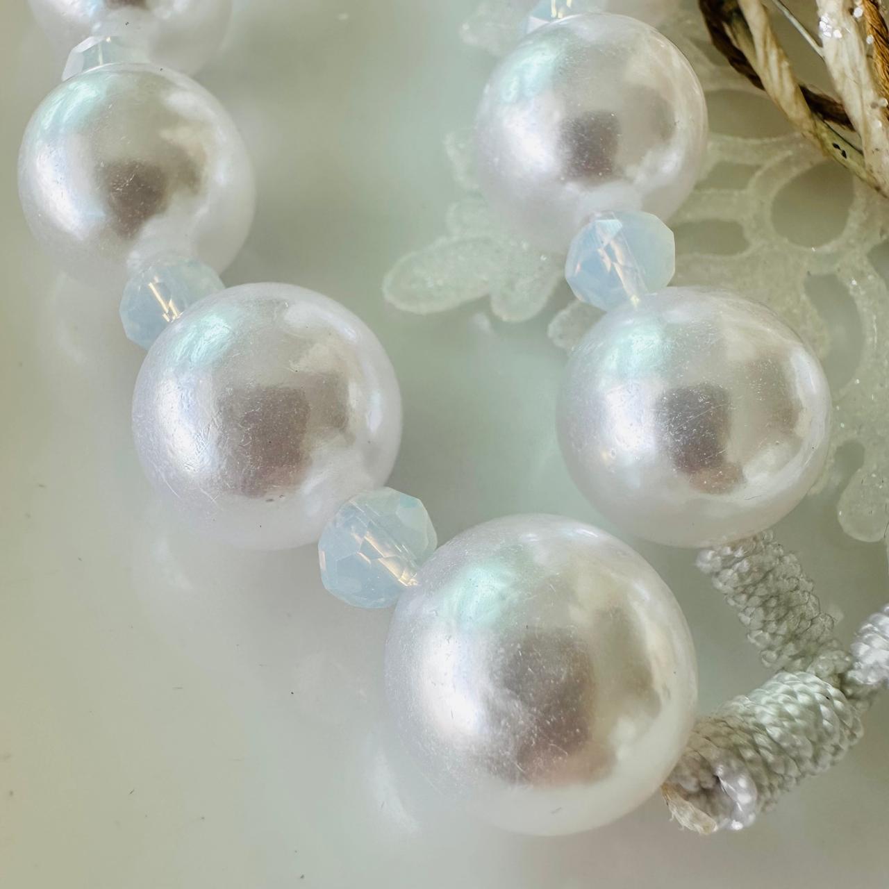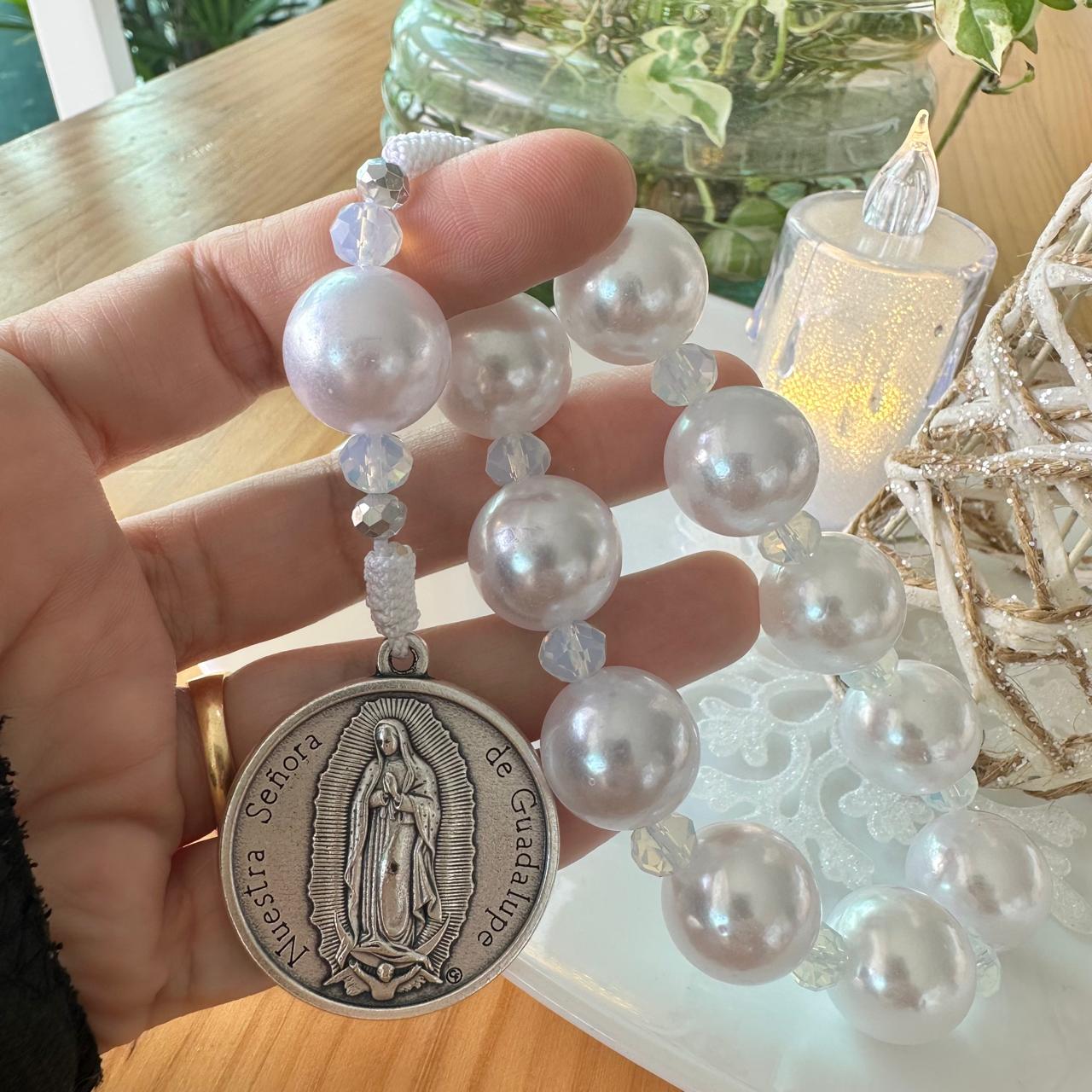 Denario en perlas con medalla de la Virgen de Guadalupe.