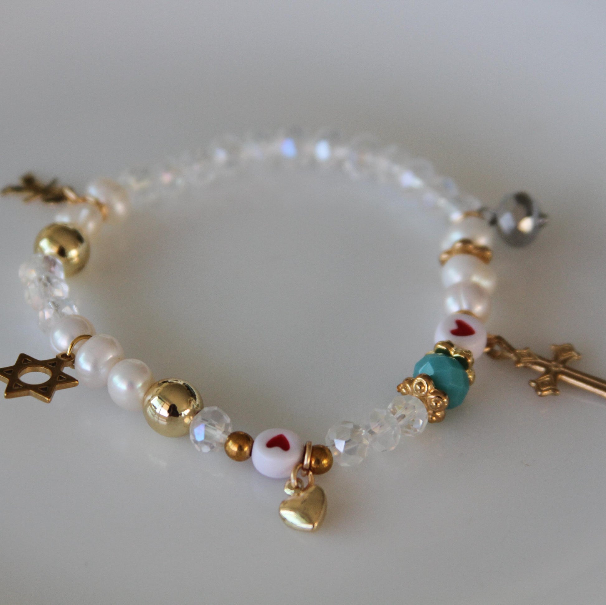 Todo empieza cuando Dios decide hacerse hombre. tres perlas son María, José y Jesús, y la estrella es su nacimiento.