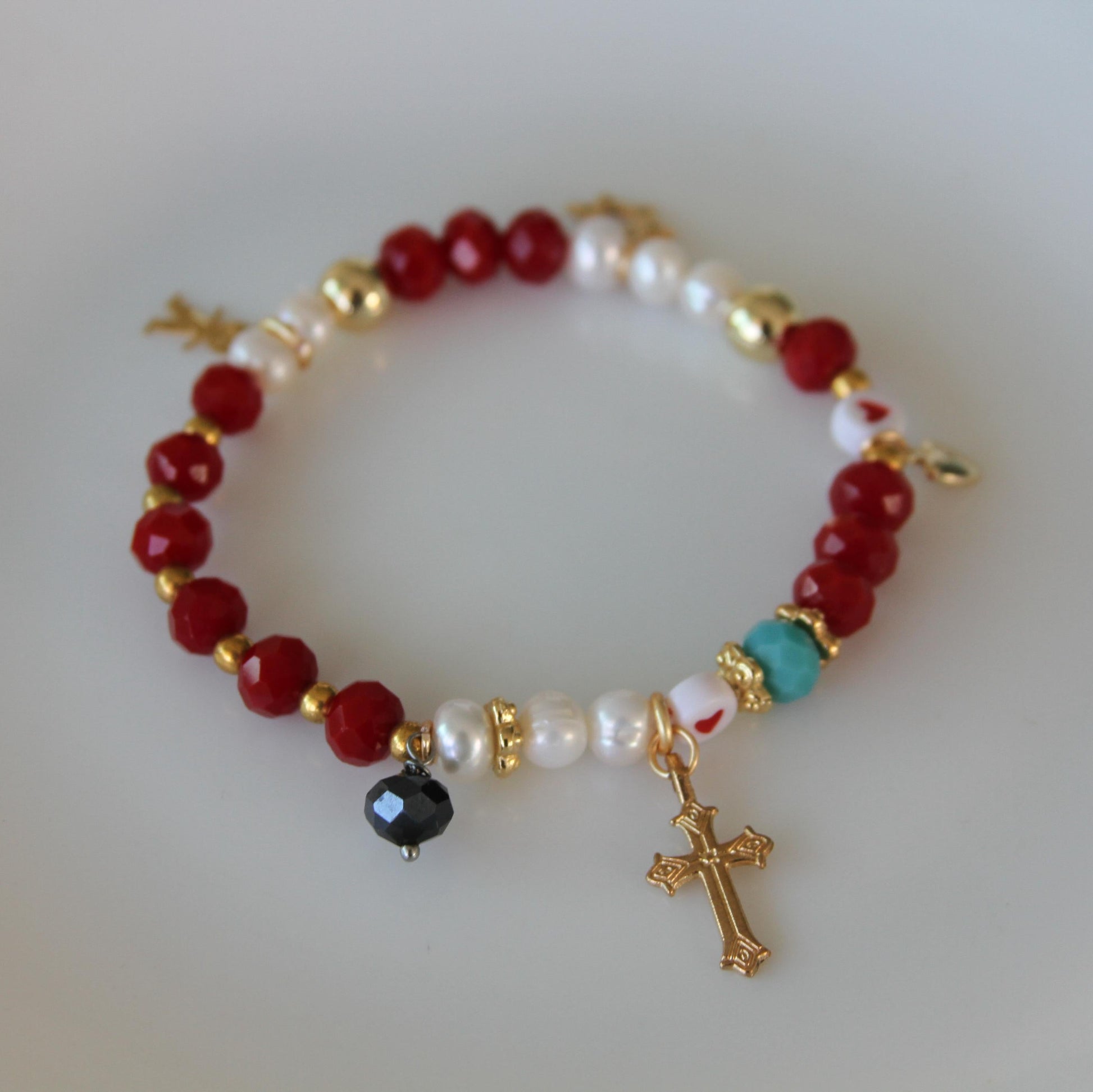 De repente la historia cambia: esa cuenta oscura representa nuestros pecados los que Él cargó en la Cruz por amor. El corazón es su Sangre, la que entregó para salvarnos.