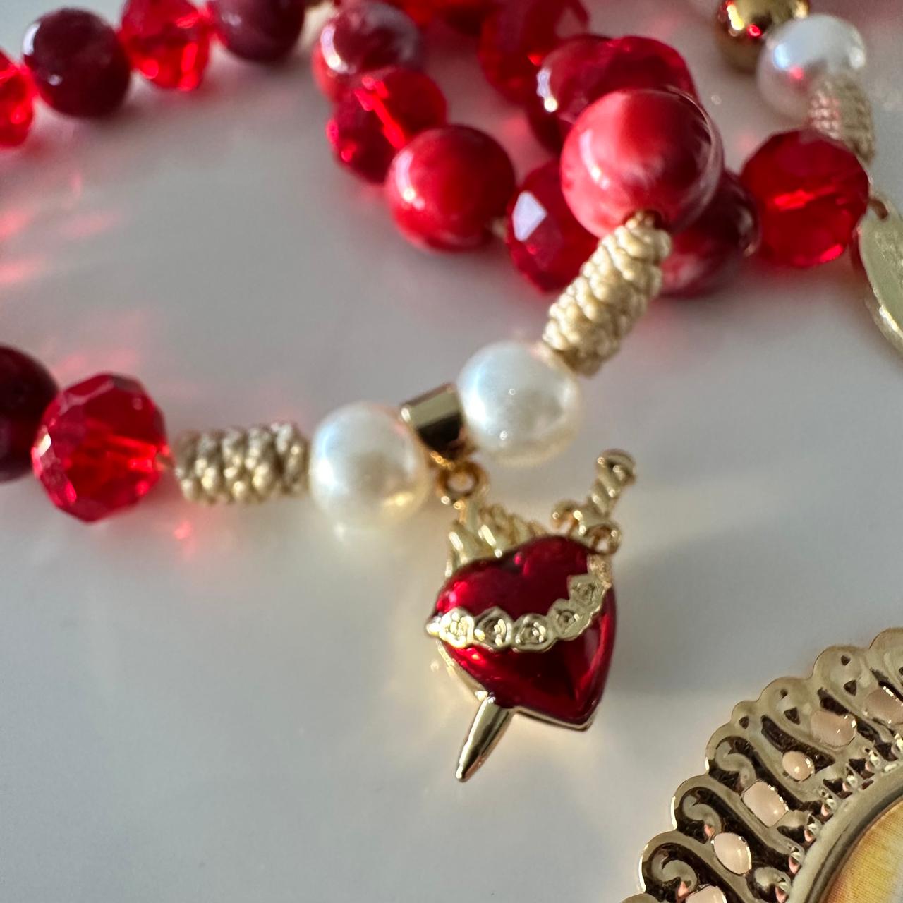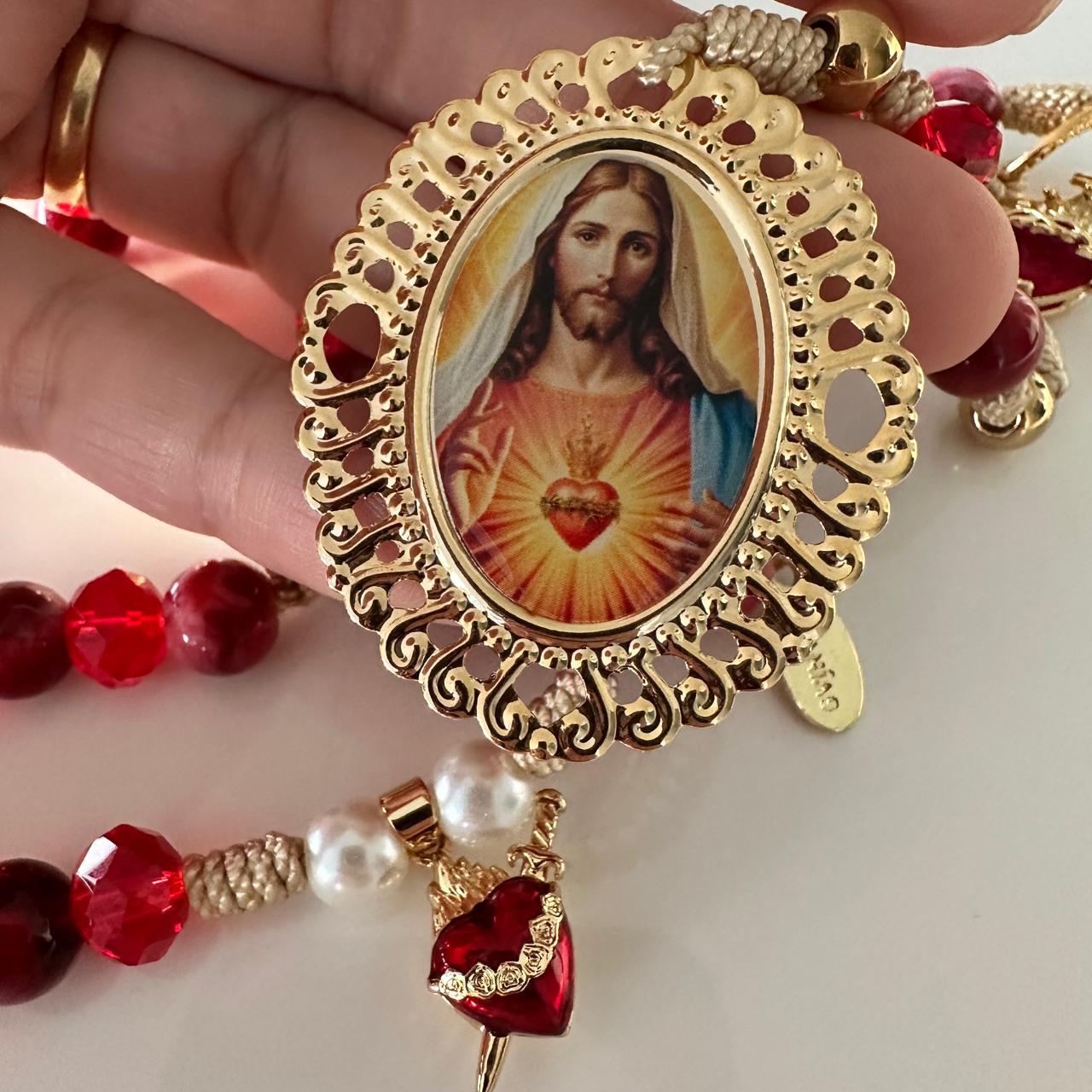 Rosario tradicional con medalla del Sagrado Corazón de Jesús Corazones de Jesús y María, bellos detalles que nos recuerdan su amor.