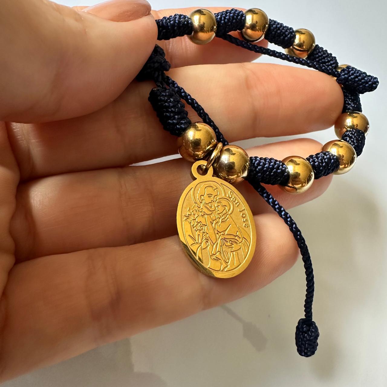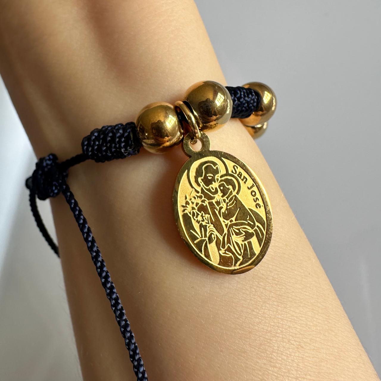 Pulsera septenario para hombre, balines y medalla de San José en acero.